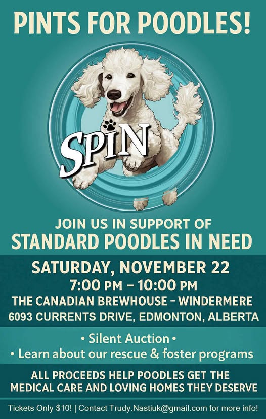 PINTS FOR POODLES Join us in support of STANDARD POODLES IN NEED! π When: Saturday, November 22, 2025 β 7:00 PM to 10:00 PM π Where: The