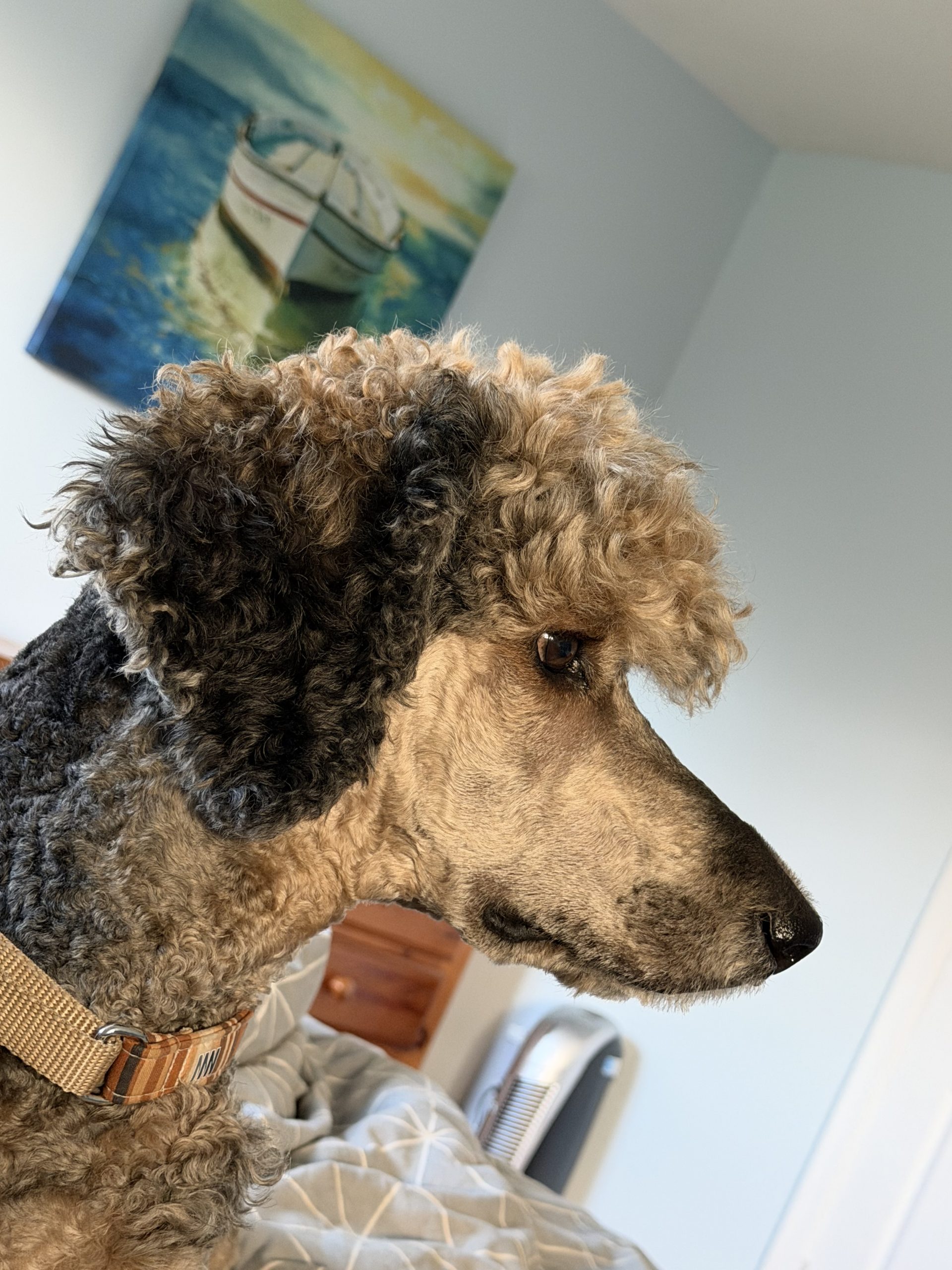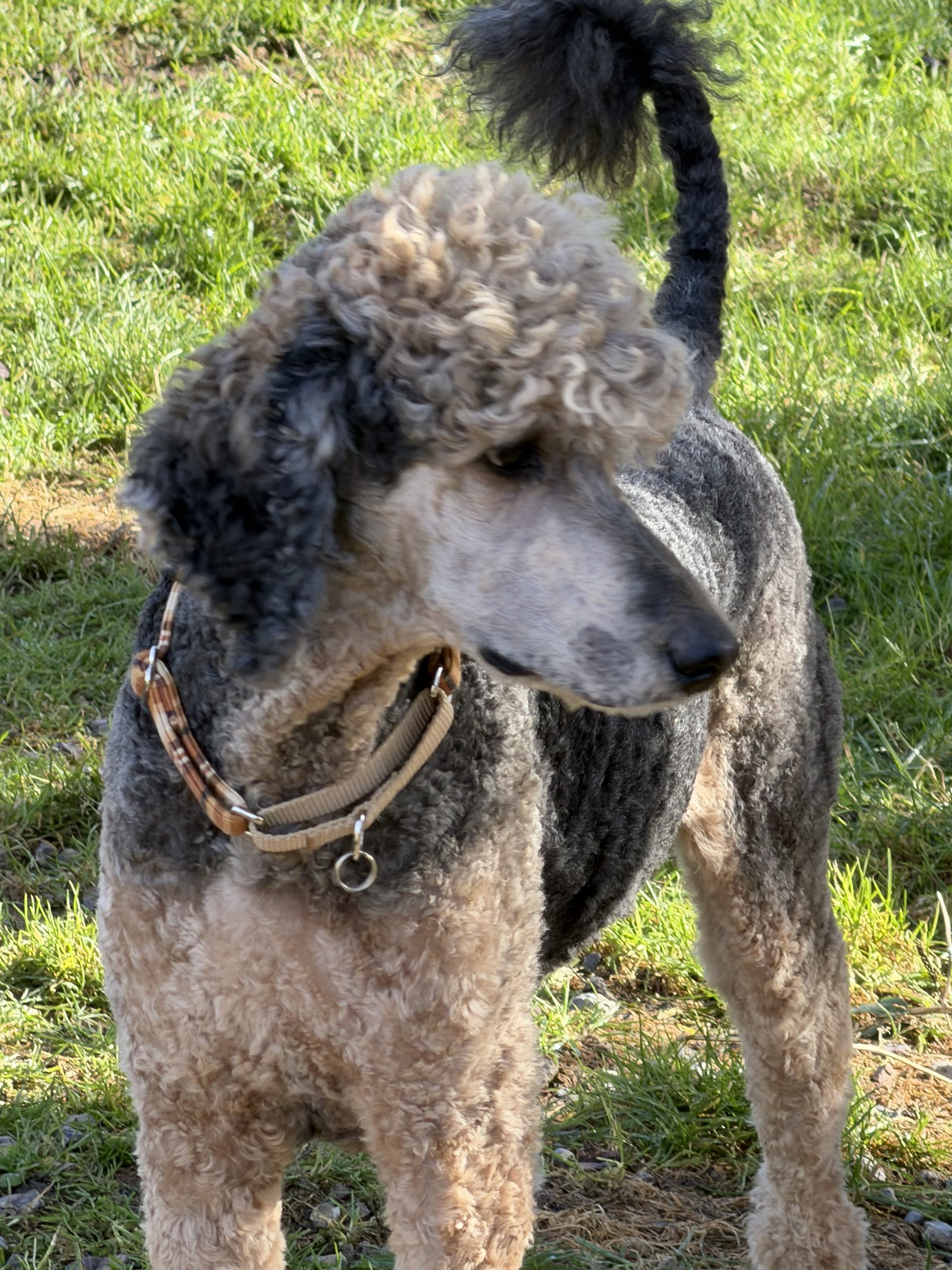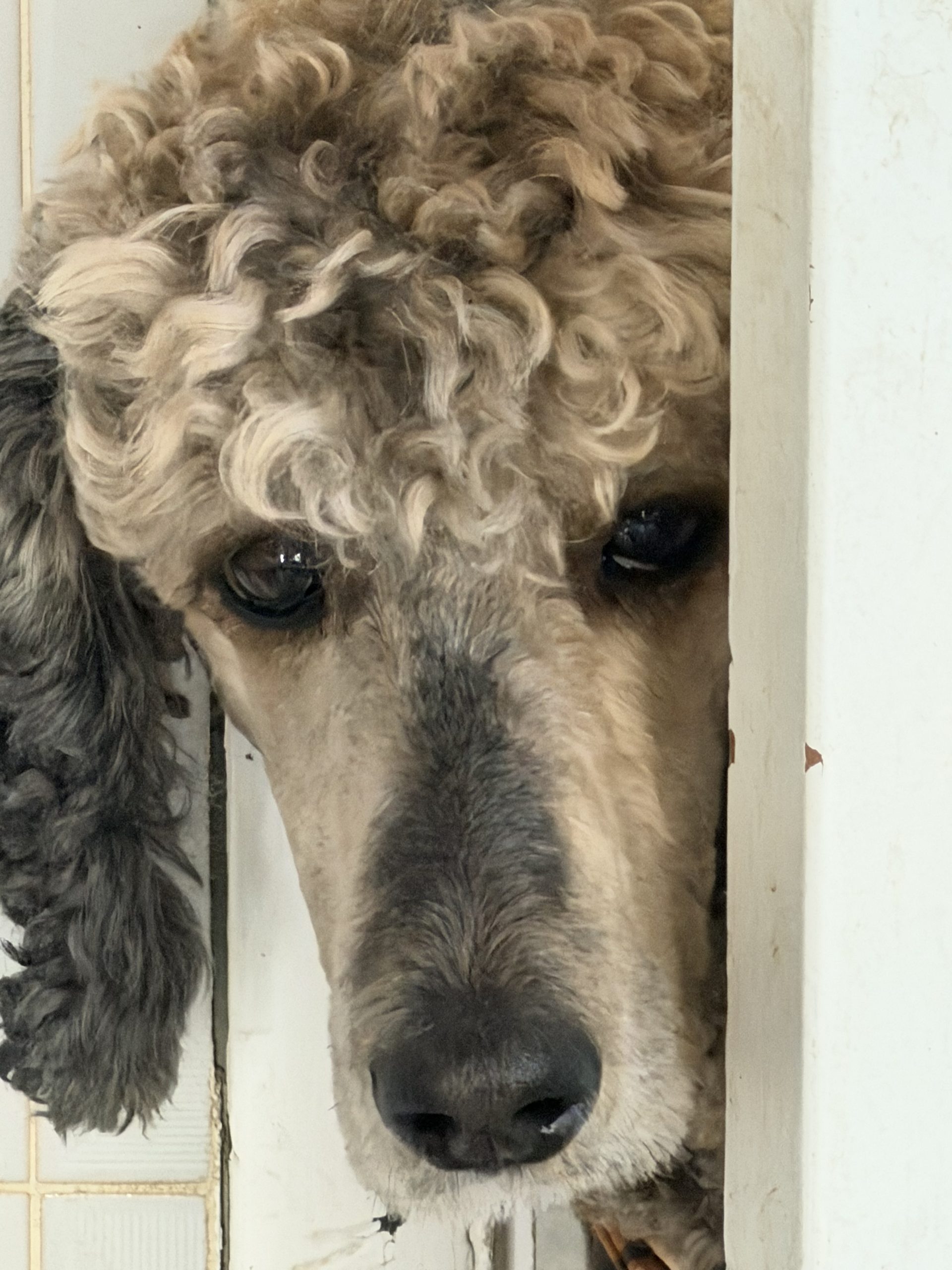 As soon as Benny found himself in SPIN, it was clear that this sweet standard poodle was ready to leave his rough start behind and find the loving home he deserves. Benny is 4 years old, full of charm, but still learning about the big, wide world. Playful, affectionate (lap dog alert!), and loves playing fetch, sardine treats, and being near his people. New things could still make him nervous, but with a patient, understanding family by his side, Benny will gain confidence every day.