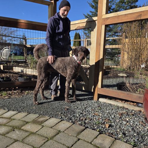 This big, joyful Standard Poodle is 30.6 kg of enthusiasm, heart, and full-body lean-in cuddles. He loves people (all people — strangers are just friends he hasn’t leaned on yet), enjoys his walks and sniffaries, and is always up for an adventure… or a cozy evening on the couch.