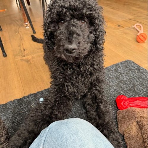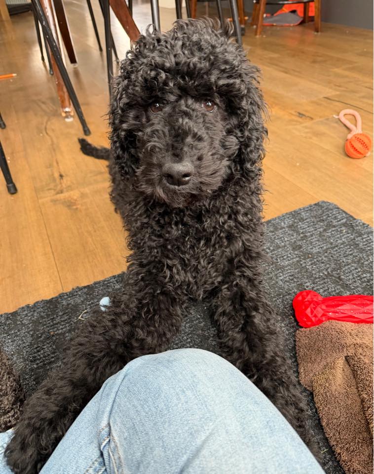 Guinness is a 4-month-old Standard Poodle with a soft heart and a bright mind. Like many puppies who missed some early socialization, he’s still learning that the world is a safe and exciting place — but with patience and kindness, he blossoms beautifully.