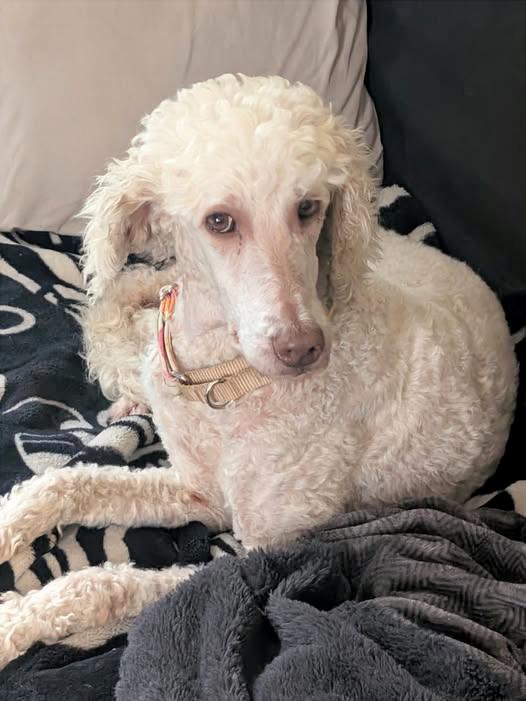 Loulu is a sweet and social, senior standard poodle. She is an owner surrender and has been loved all of her life. Loulu will wiggle her way into your heart.