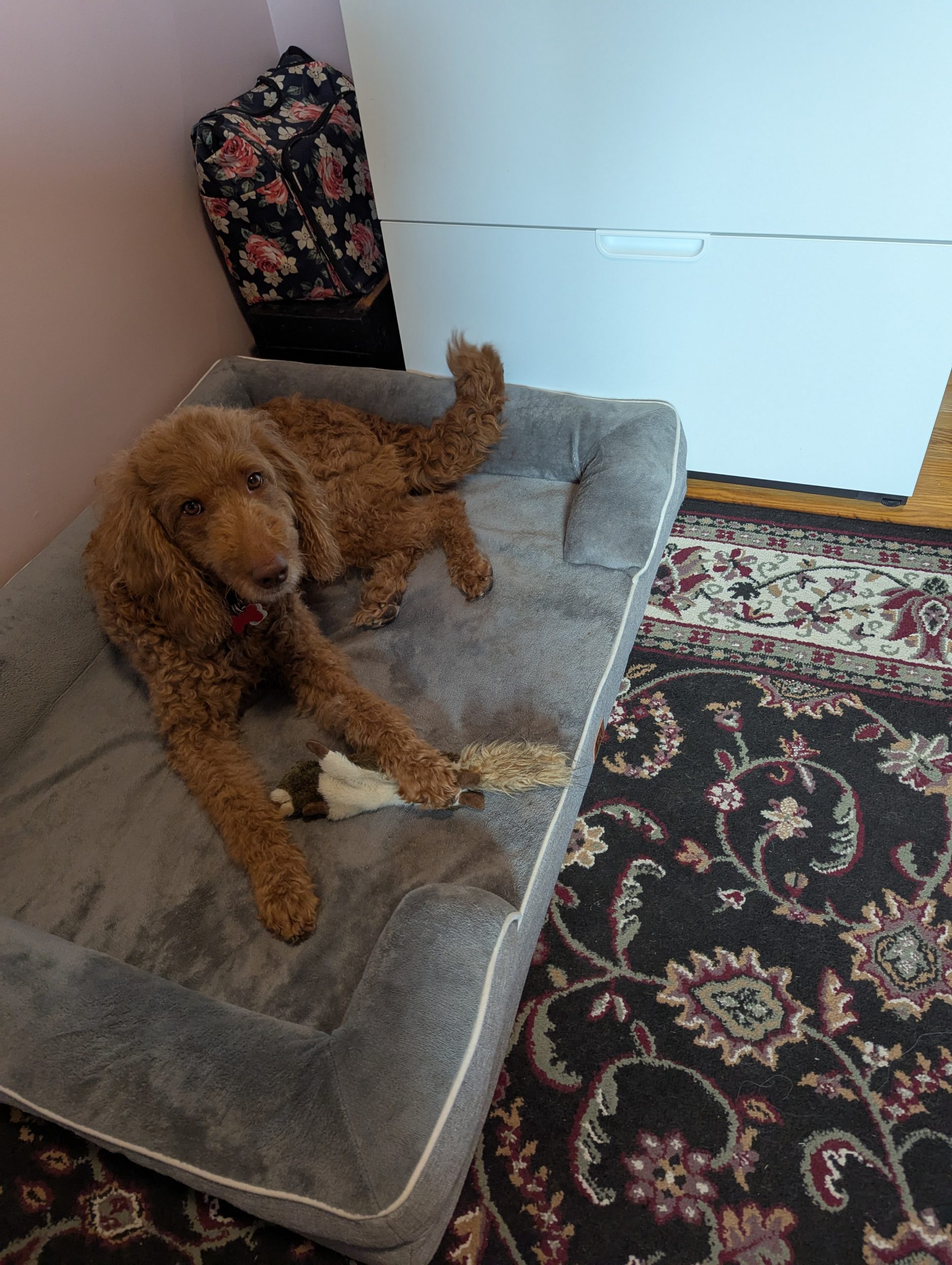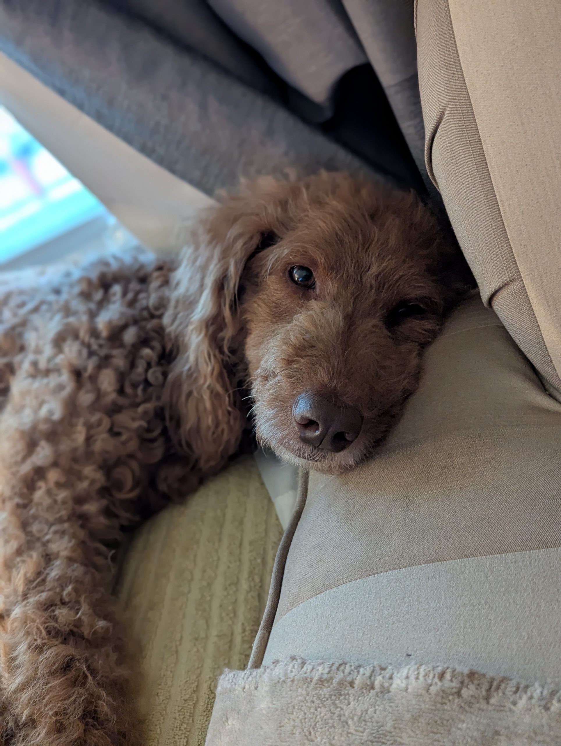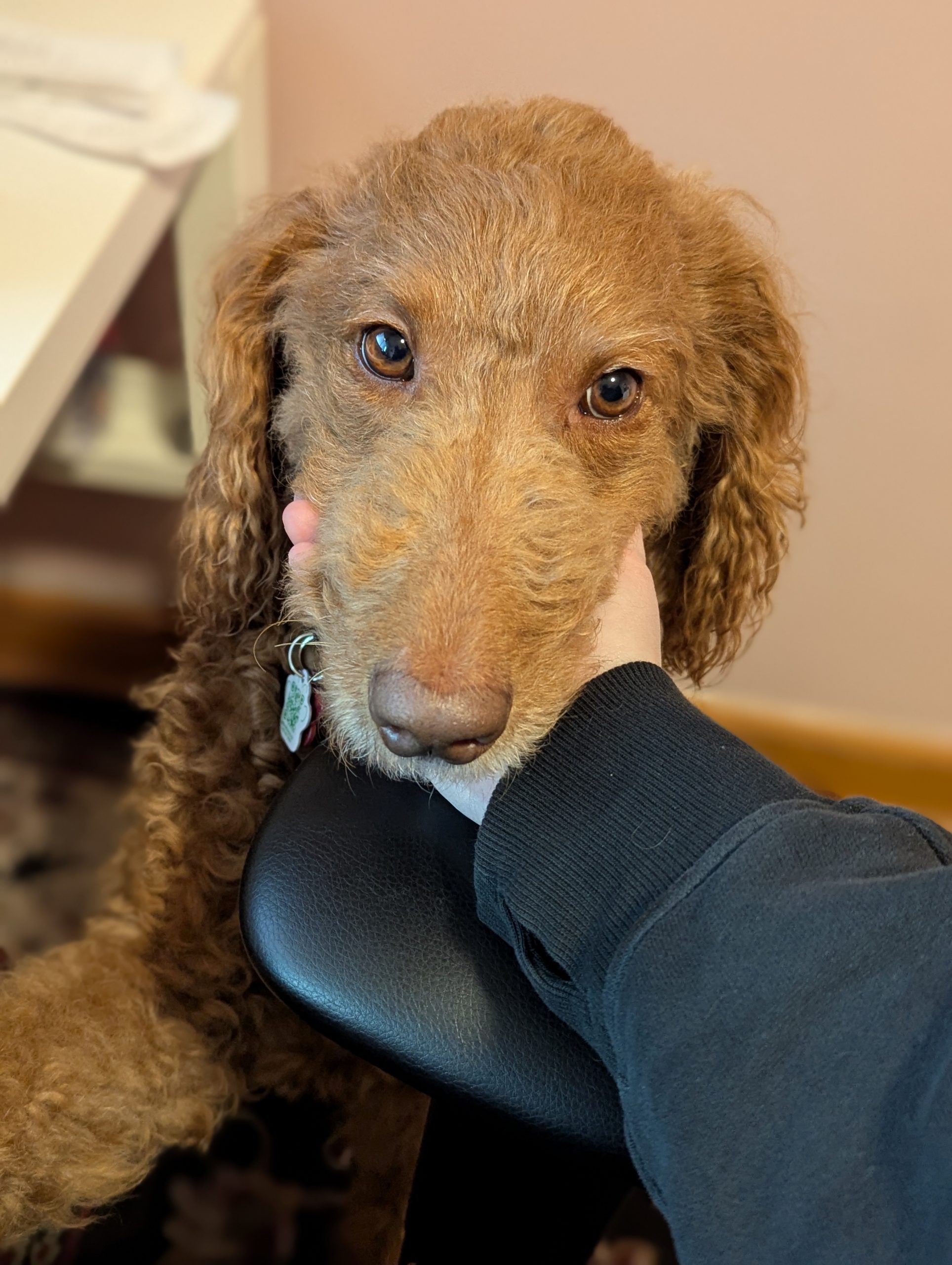 Six-year-old Mahina is a sweet, snuggly poodle mix looking for her forever home. She adores people, loves to cuddle, and is happiest when she can be close to her family. While she’s affectionate and loyal, Mahina is also sensitive — she’ll need patient guidance as she continues to build confidence on walks and around other dogs.