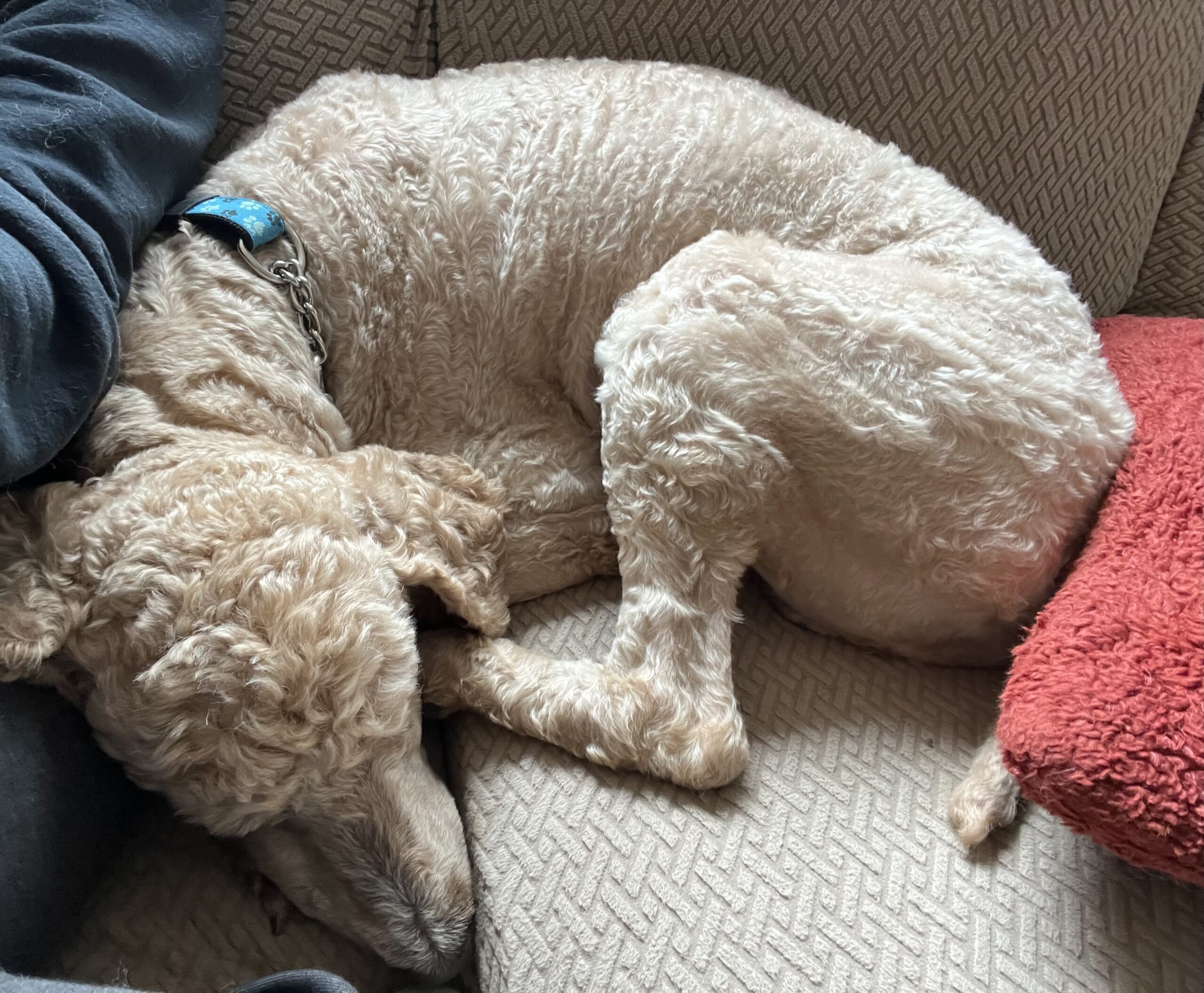 Oakley then moved to serial foster Mom, Lesia whose dogs taught him about living in a house and how to snuggle on a couch. We did adopt Oakley out prior to this, but his fears and anxieties heightened after this, yet another change and we recommended he be brought back to Lesia.