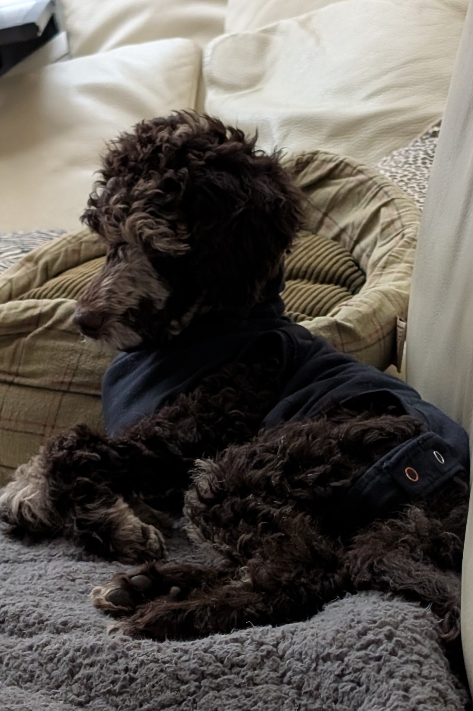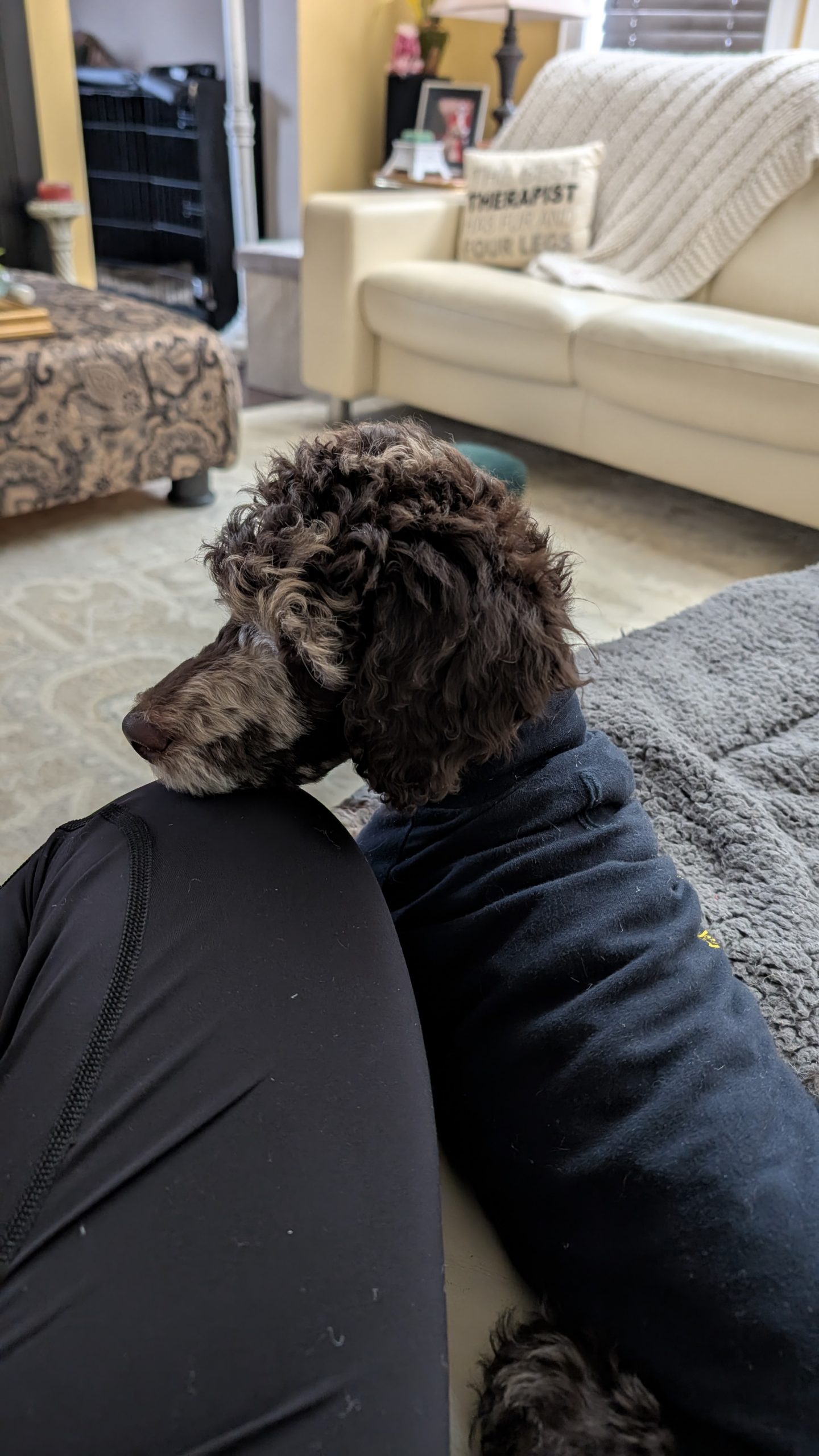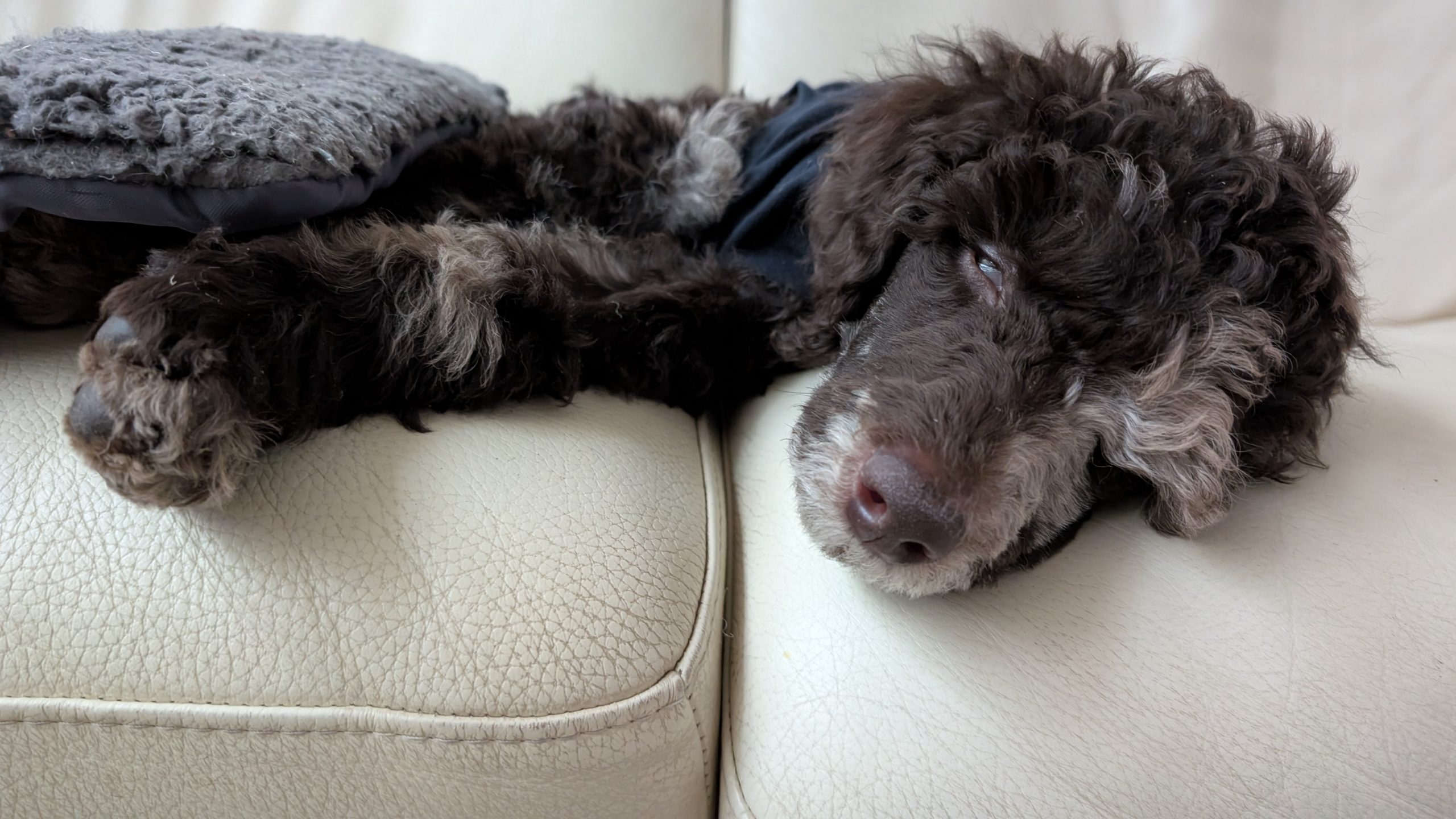 This medium-energy Standard Poodle mix is sweet, food-motivated, and eager to learn. He loves tug, chase, puzzle feeders, and being close to his people. He’s 95% house trained, doing well with crate training, and already showing how smart and adaptable he is.