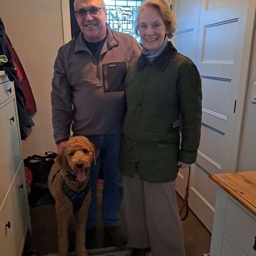 Meet Zeus, a 16-month-old standard poodle with a big heart and an even bigger personality. His confident, affectionate, and playful personality attracted active adopters who enjoy training and adventure. SPIN is so happy for Gemma and Ian. When Gemma and Ian walked in, seeing how happy Zeus was to see them again took all the sadness away from his foster Mom and filled her heart with warmth. Have a wonderful life with your new family, sweet boy!
